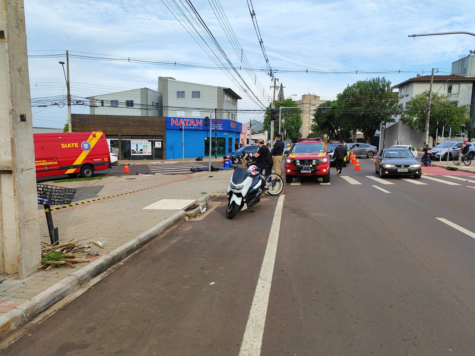 O condutor da scooter, que ainda não foi identificado, foi atingido pela caminhonete no cruzamento da Avenida Carlos Gomes com a rua da Lapa, no bairro Ciro Nardi.
