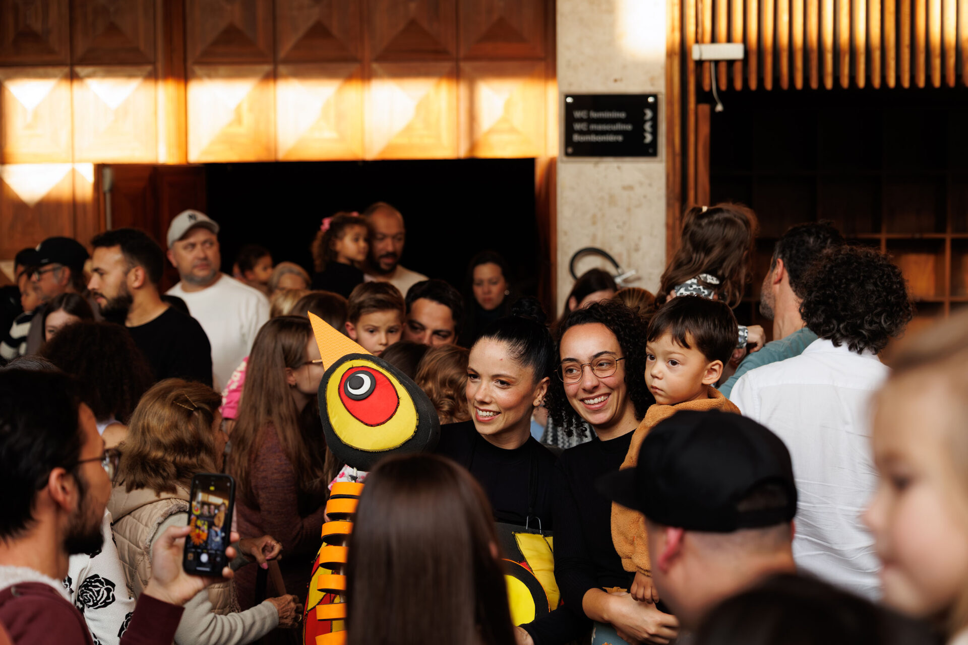 ENCONTRO DE PERSONAGENS – Após as apresentações, as crianças puderam interagir e tirar fotos com os personagens do espetáculo no foyer do Guairão. “É muito legal esse encontro depois porque é quando a gente vê exatamente o quanto o espetáculo toca as pessoas e o quanto elas ficam emocionadas, elas trazem esse retorno pra gente”, contou Garanhani.