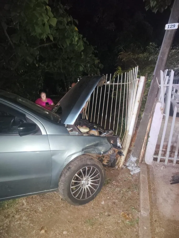 Um dos automóveis colidiu em outro que estava estacionado e, em seguida, atingiu o portão e o poste de uma residência, causando danos materiais. A condutora recusou-se a realizar o teste do etilômetro e foi autuada conforme o artigo 165-A do Código de Trânsito Brasileiro.