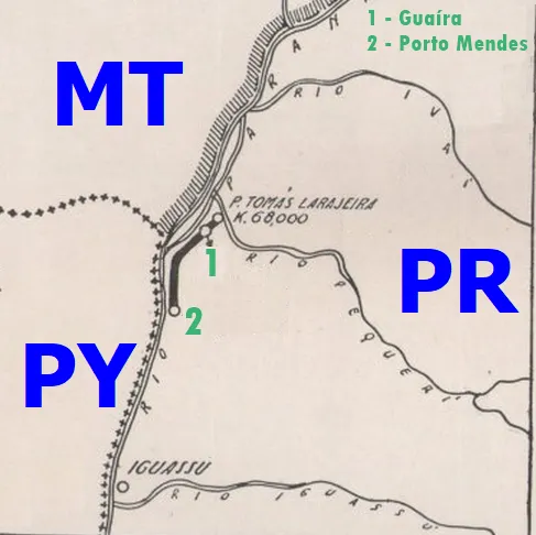 Isolada, como um universo à parte, a Companhia Matte Larangeira construiu um trecho de 60 quilômetros de ferrovia entre os portos Guaíra e Mendes, mas para uso exclusivo da empresa, com a finalidade de superar o obstáculo das Sete Quedas à navegação fluvial.