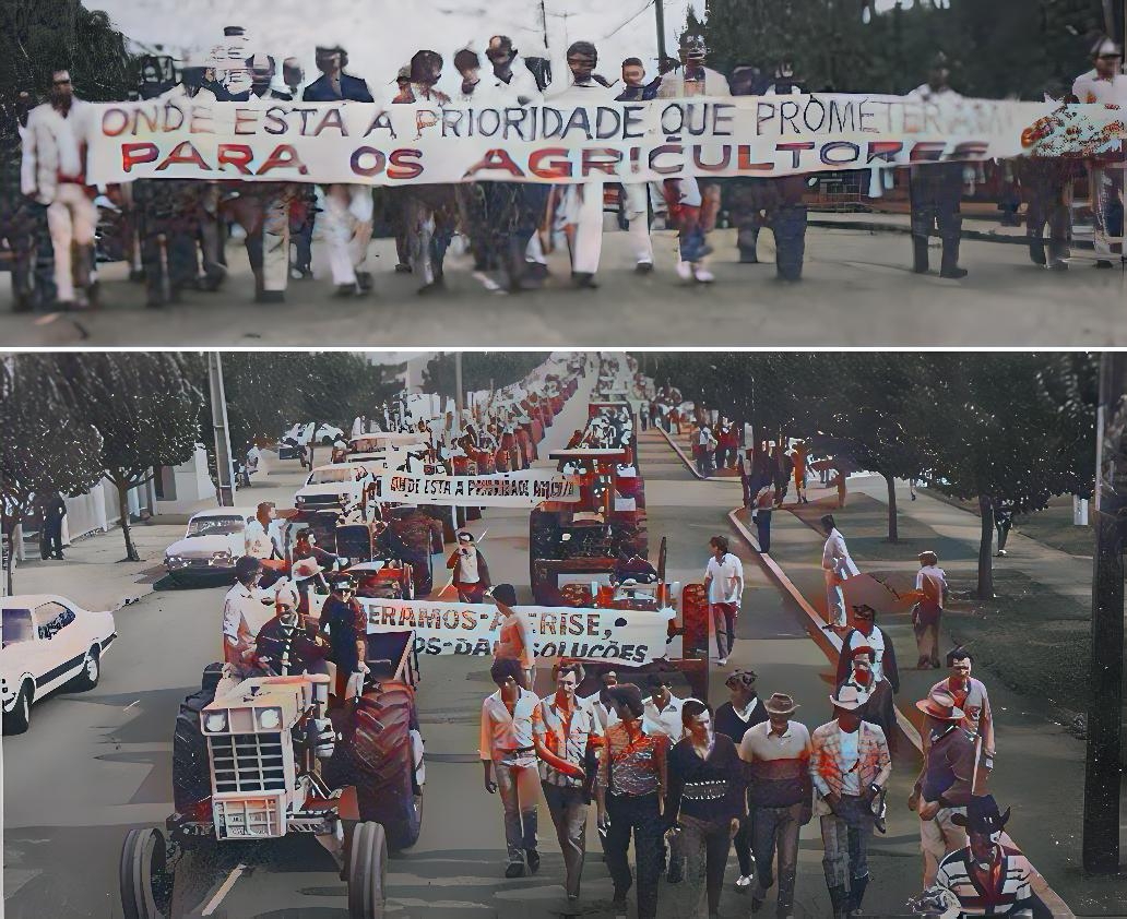 Durante a Década Perdida, como os anos 1980 ficaram conhecidos, nas cidades os trabalhadores, industriais e comerciantes sofriam porque a ditadura deixou a economia arrasada. No campo, a agropecuária pagava as contas do fracasso governamental, cujo anunciado “milagre” não passava de picos de crescimento curtos: os “voos de galinha”.