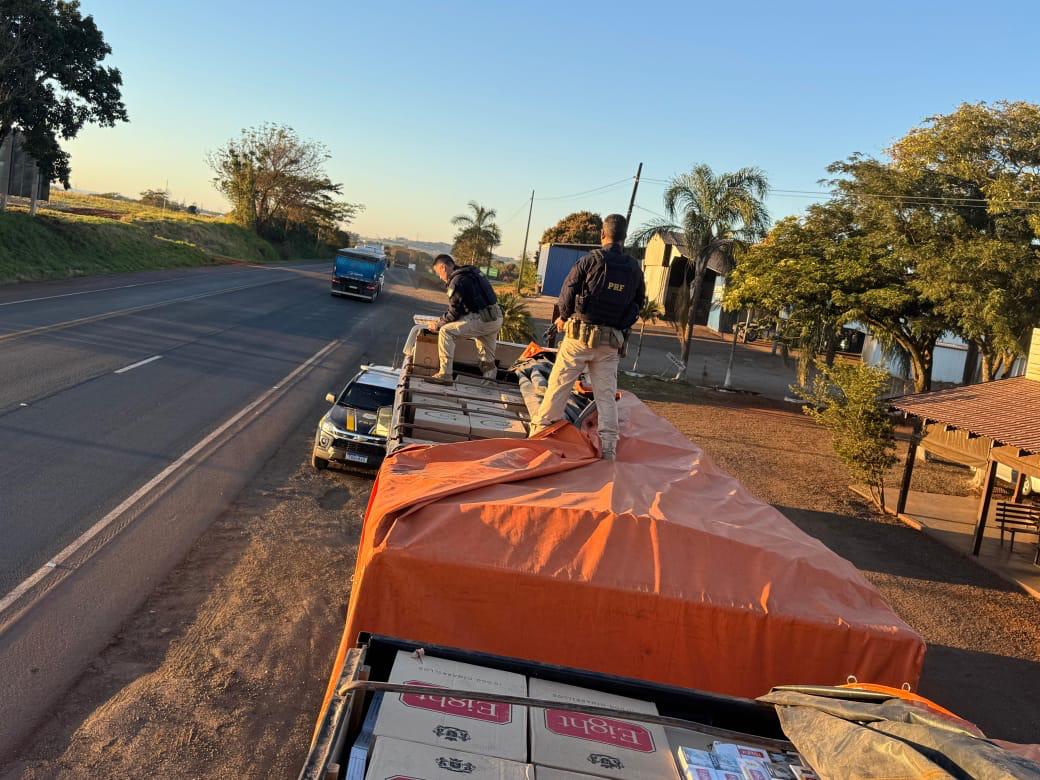 A Polícia Rodoviária Federal (PRF) apreendeu, na terça-feira (12), aproximadamente 600 mil maços de cigarros de origem estrangeira, transportados ilegalmente em um caminhão na BR-163, em Mercedes.