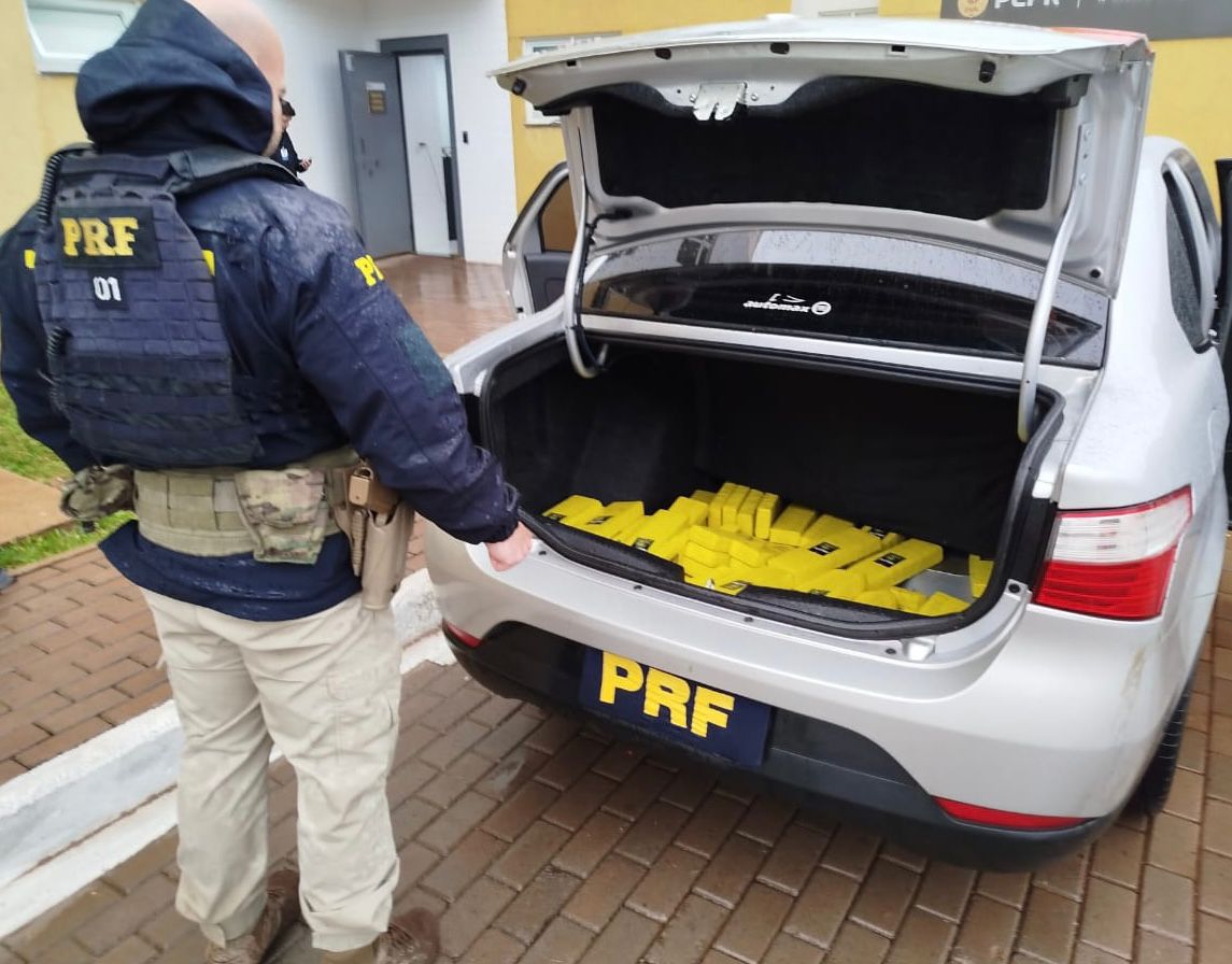 O condutor, ao ser abordado, confessou que transportava maconha. A droga estava espalhada por todo o interior do veículo e porta-malas.