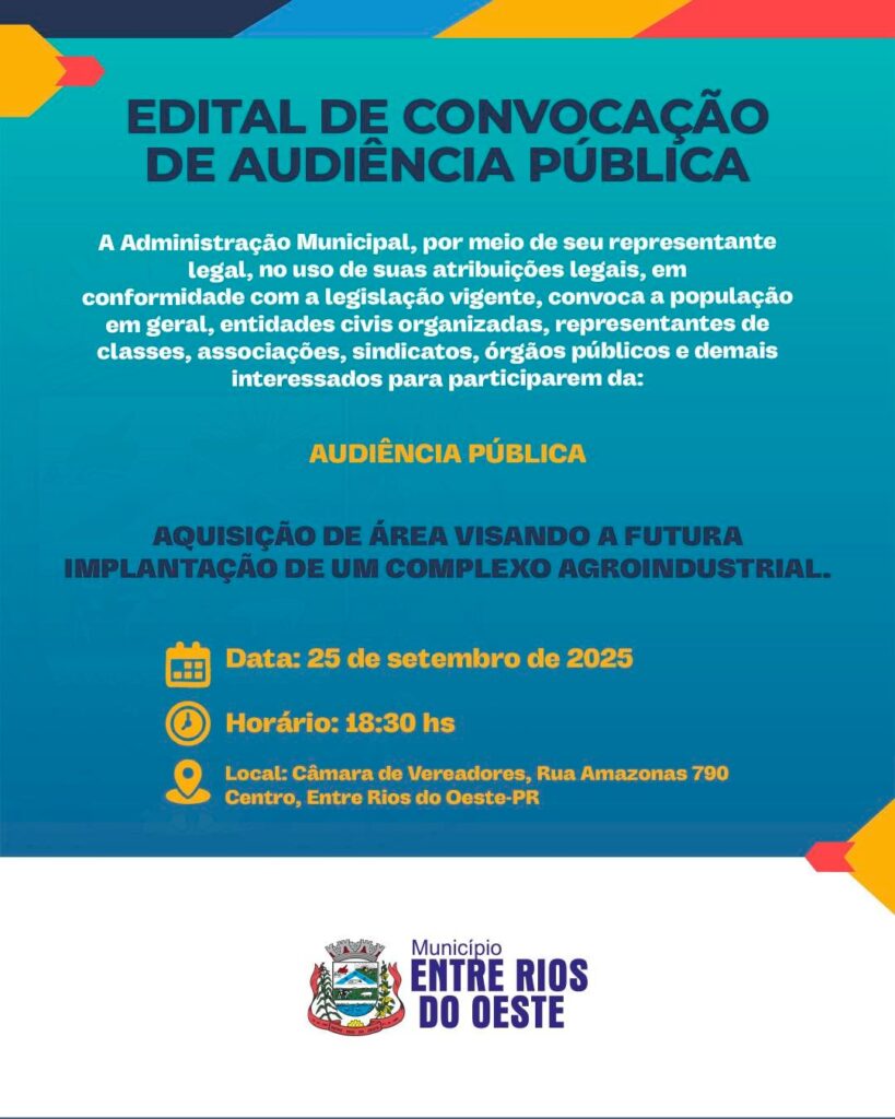 Entre Rios do Oeste promove audiência pública sobre aquisição de área para complexo agroindustrial