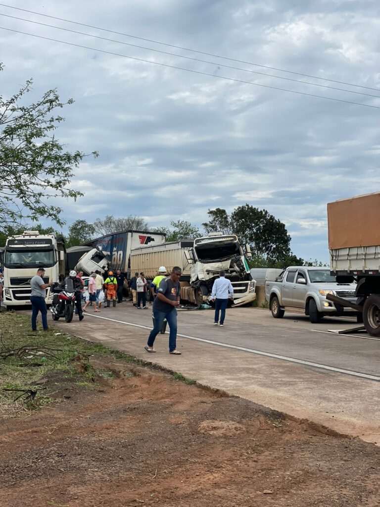Acidente com quatro caminhões e dois carros deixa vítima fatal na BR-163